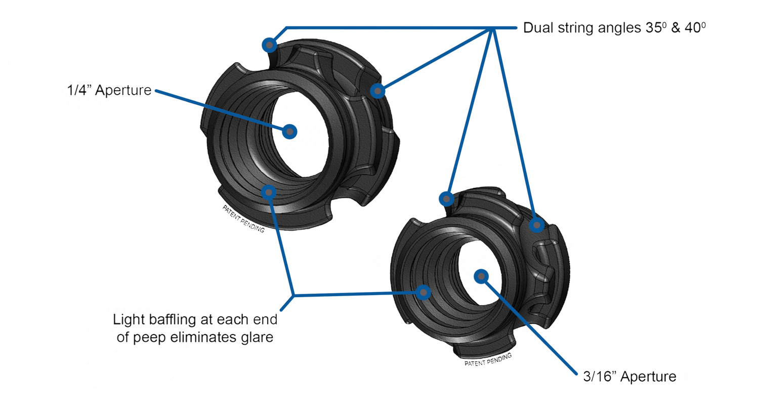 Dual string grooves provide archers the ability to choose the correct string angle for their particular set up without the need to purchase a second peep sight. The 35º and 40º string grooves were specifically chosen to accommodate the string angles found on today’s hunting bows.