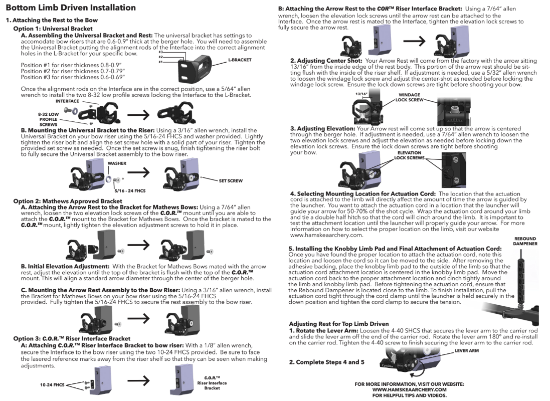 - Configurable for top limb, bottom limb or cable driven activation