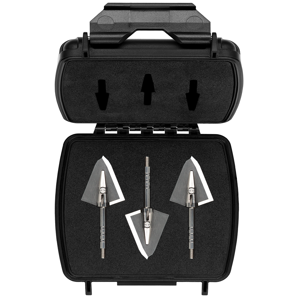 Iron Will’s Single Bevel Broadheads are engineered to maintain the arrow's rotational spin through impact, resulting in a bone splitting effect and more tissue damage throughout the animal. We added a single bevel bleeder (optional) which assists in this rotation, opens up holes, and increases the total tissue sliced. The result creates massive blood trails and quick kills. Choose right or left to match your fletching.