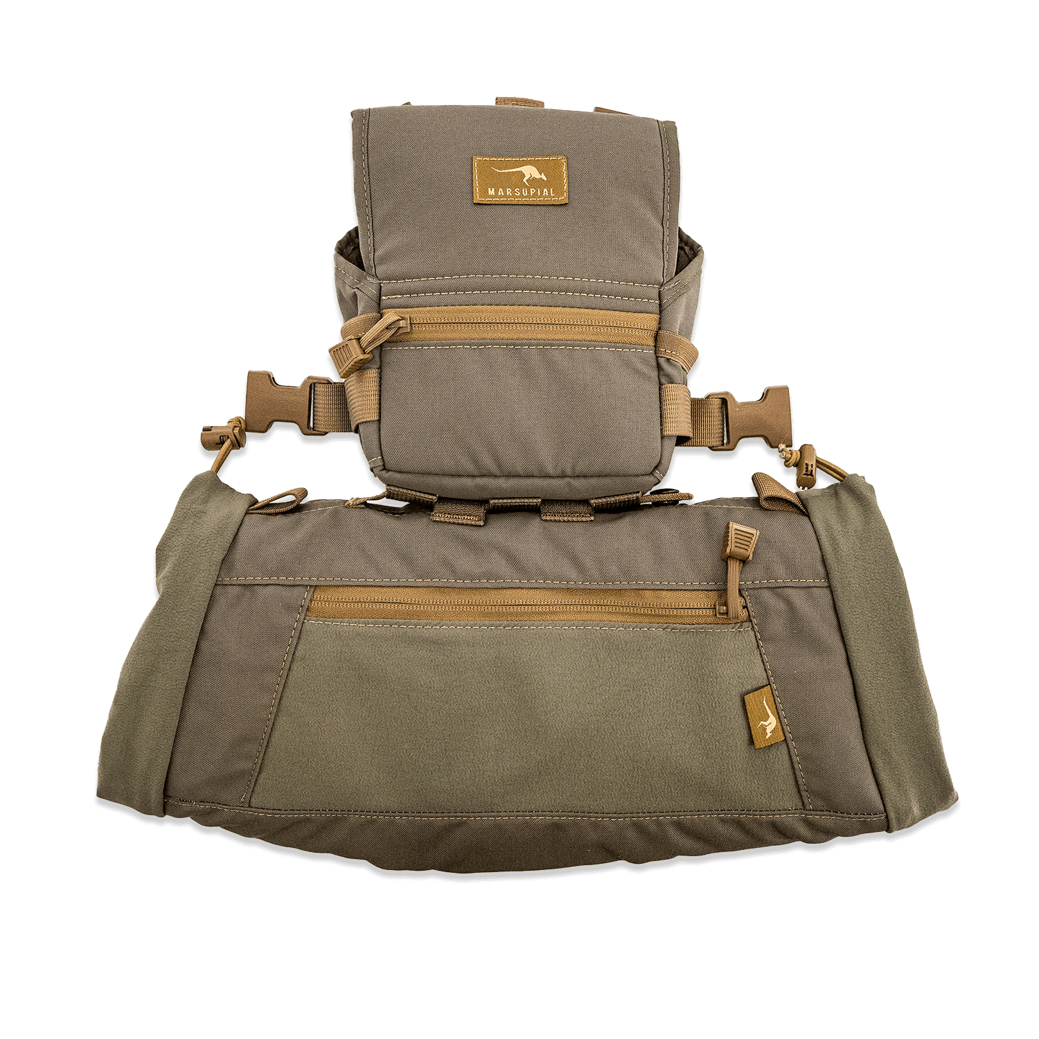 For those who run a holster or bear spray canister on the bottom MOLLE, the Handwarmer Muff still works for you by attaching it to the holster with two included gatekeeper buckles. So you don't have to choose between bear protection and keeping your hands warm.