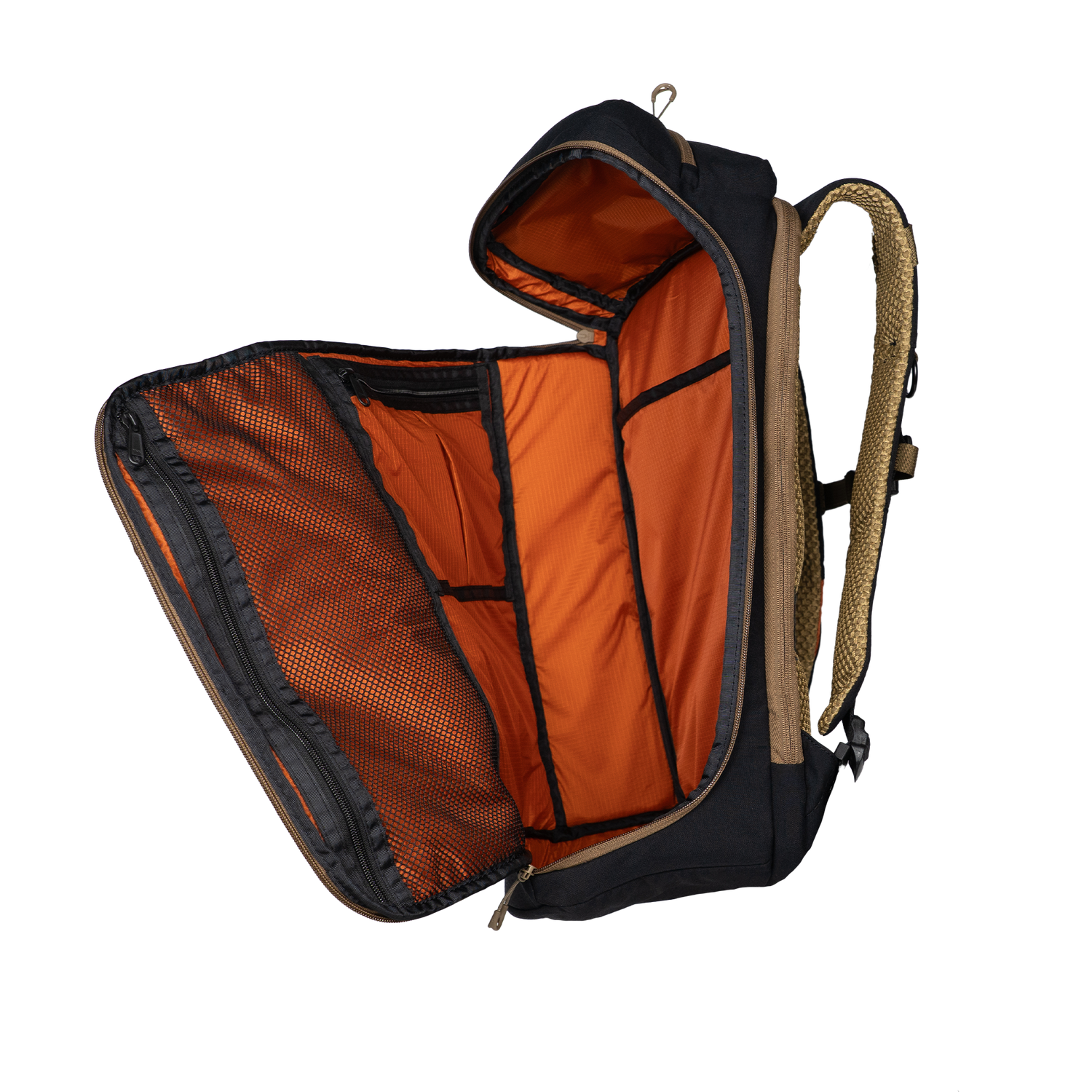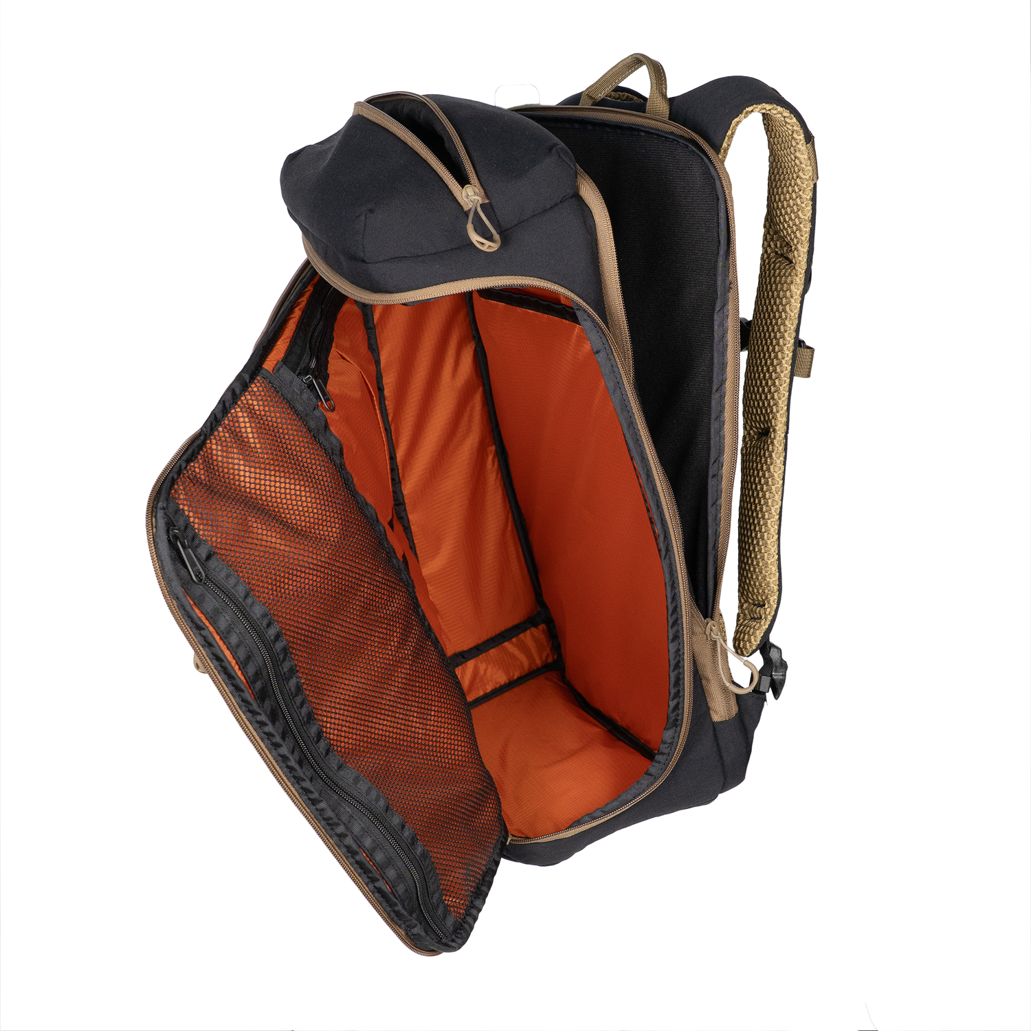 - Inside lined with a burnt orange contrast for high visibility to internal contents
