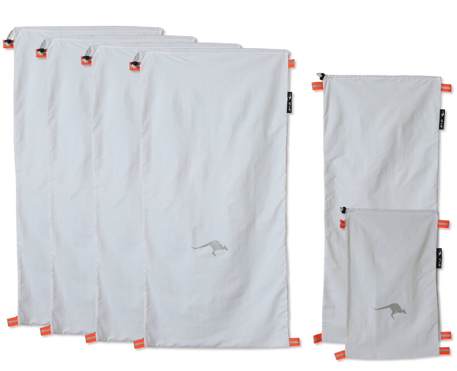 Marsupial Synthetic Game bags protect your game meat and are built to last. Packed with features, these game bags will end your search for the perfect game bag. Marsupial Game bags are constructed out of a extremely durable nylon material that breathes exceptionally well to help your meat cool quickly. With no seam on the bottom and reinforced seams along the sides, the bags can hold an extreme amount of weight without failure. Each bag has a reflective logo on the front, (4) reinforced orange reflective tabs in the corners, and reflective white drawstring so the bags are highly visible at night. Rectangular in shape, the bags provide high coverage for animal quarters with no wasted space width wise like other "squarish" shaped bags on the market. Purchase the games bags in pre-organized kits or individually for a custom kill kit.