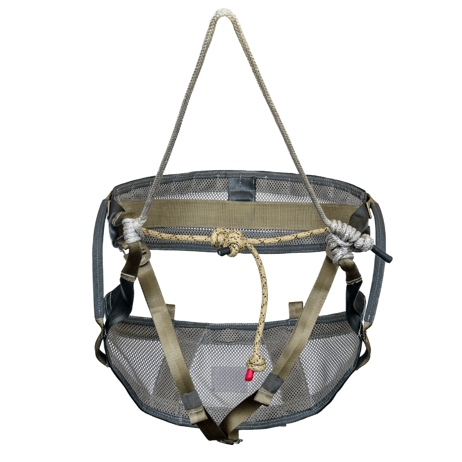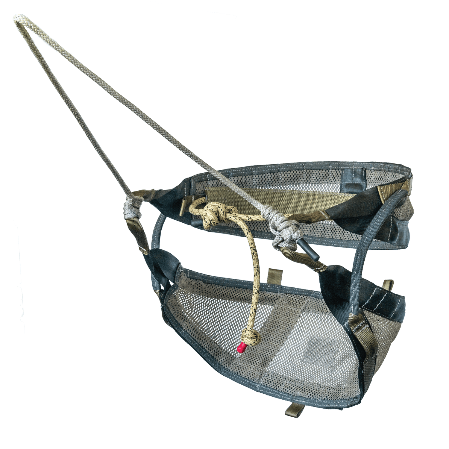 Metal Free Construction – The first saddle with metal free construction, we replaced the traditional waist belt with our proprietary rope belt design. Built from a custom blend of UHMWPE and polyester and using a load rated adjustable climbing knot, our rope belt reduces weight, is deadly silent, has infinite adjustment, and prevents the saddle from falling down while hiking.